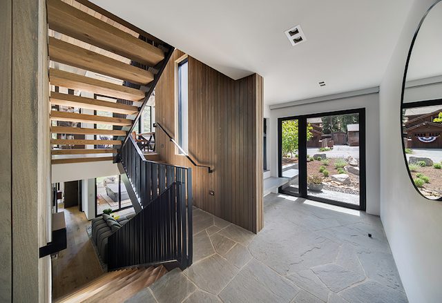 The split-level design of the home as revealed from the front entry