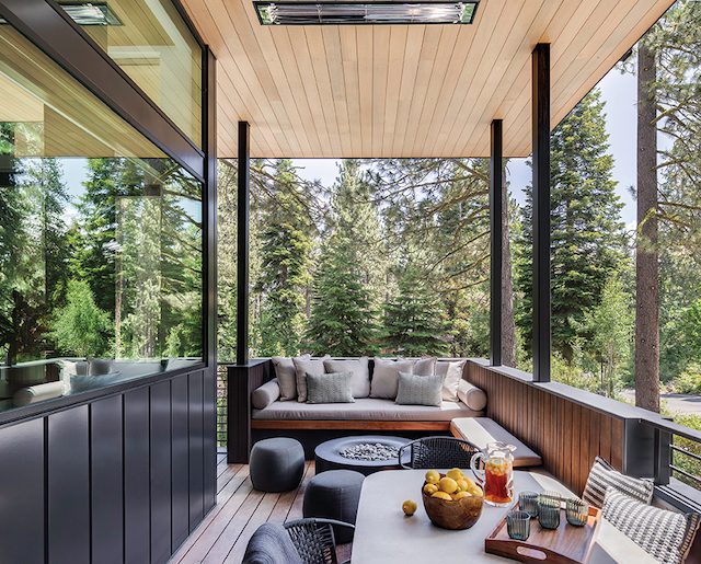 In keeping with the metaphorical reference, it is now smooth sailing for the homeowners and their family, although their residential “yacht” of sorts remains well anchored in a bucolic site surrounded by pines and fir. Meanwhile, a Lake Tahoe marina, where they keep their actual boat, is a mere two blocks away.