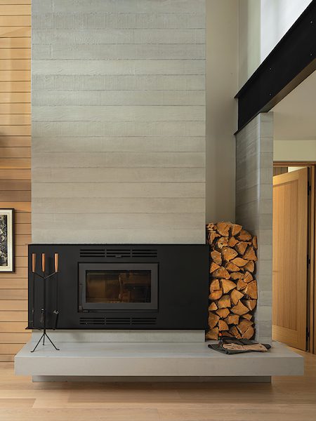 An efficient wood-burning stove with custom metal surround was one of the homeowner’s must-haves