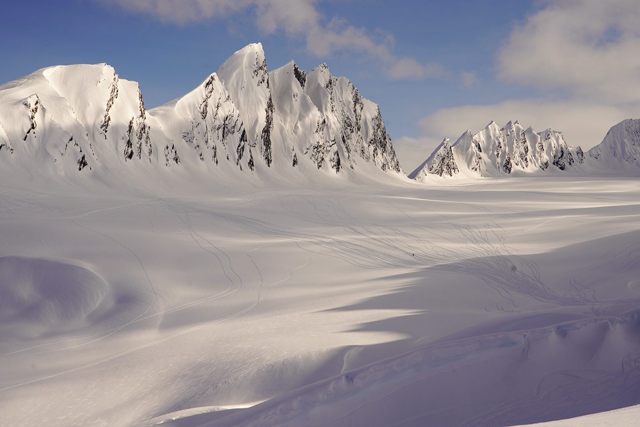 There are three main lots where people stage on Thompson Pass, each offering access to prime terrain—some of it directly from the parking lot. To score clean, untouched lines, however, you’ve got to dig deeper, venturing farther into the wild folds of the Chugach.