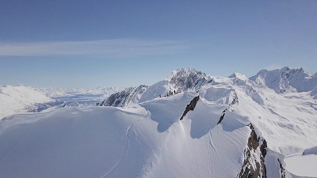 After days of leaden skies and howling winds, cabin fever had sunk in once again. Finally, there was a break in the storm, and sunlight spilled across the Chugach. The crew rallied early—Ashley, Jordan, our film team and our newest addition, filmer Greg Stafford. The stoke returned.